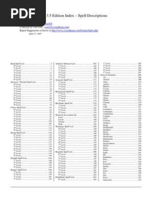 Dnd3 5index Spell Descriptions Pdf Tsr Company Games Fantasy Role Playing Games