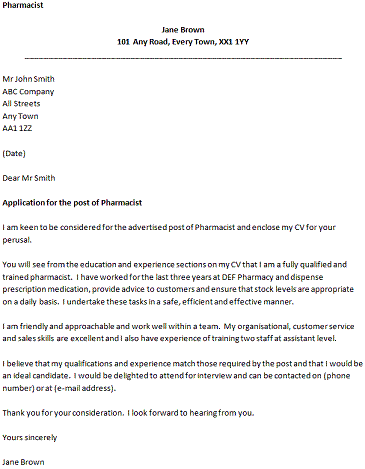 Cover Letter For A Pharmacist Icover Org Uk